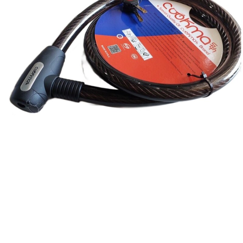 قفل کابلی موتور سیکلت کوکما به طول 150 سانتی متر و قطر 2.2 سانتی متر میباشد این قفل دارای کلیدِ کامپیوتریِ چراغ دار و درپوش کلید به روی قفل برای امنیت بیشتر است. طراحی این قفل به شکل چشمگیری زیبا میباشد.